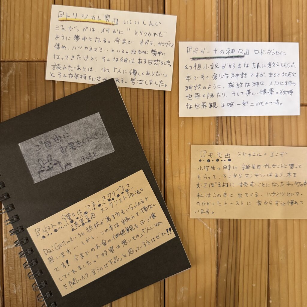 さらに、他の本棚オーナーさんの真似をして、私も自由帳的なものを置いてみました。
