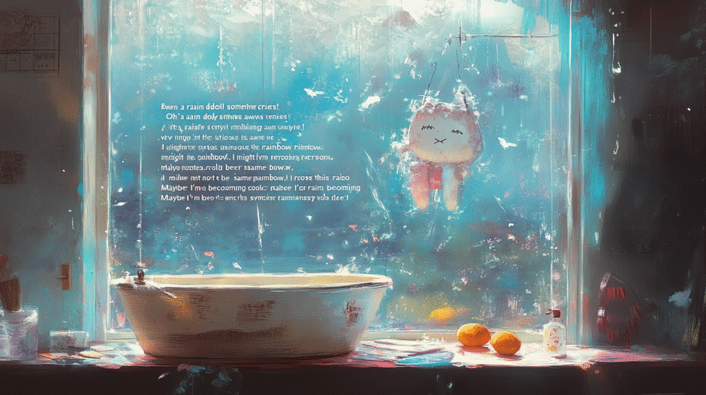 むしろ、虹色を目で追えば追うほど新しい感情が私の中に芽吹き、その感情が虹色の歌詞となって壁一面に広がって、新しい歌を作っていくのです。
