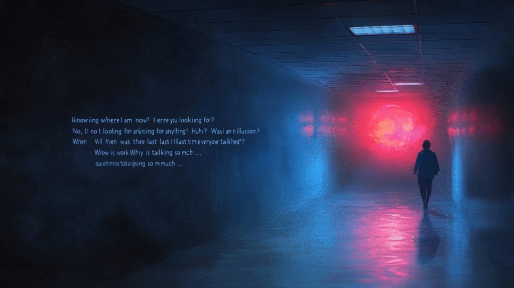私は、その声に向かって「いや、私は何も探してないです!」と答えるのだけれど、先ほどの私のような人からの返答はなくて、ただあたりはしーんと静まり返っているだけで、私は「幻だったのかな?」と思いながら再びテレビに視線を向けるのです。