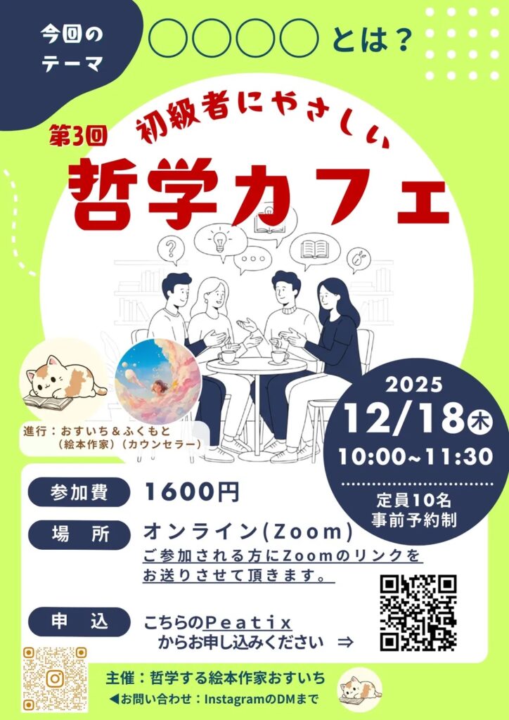 この度、まちごこち文庫で出会ったおすいちさんとオンライン哲学カフェを開催いたします!