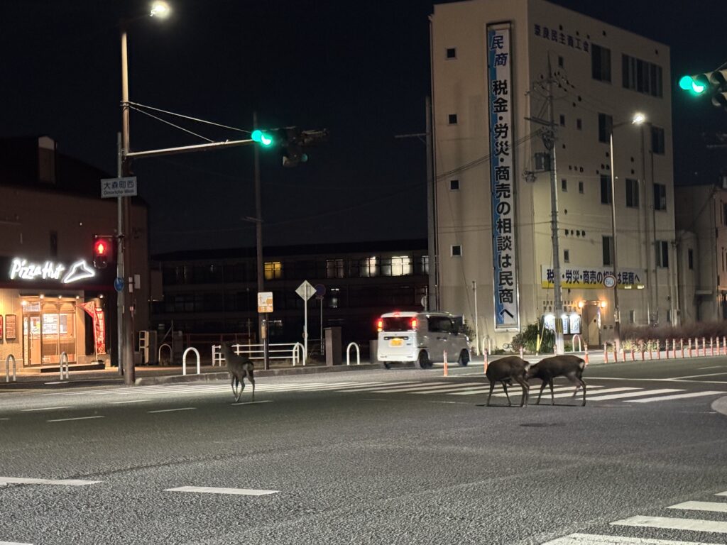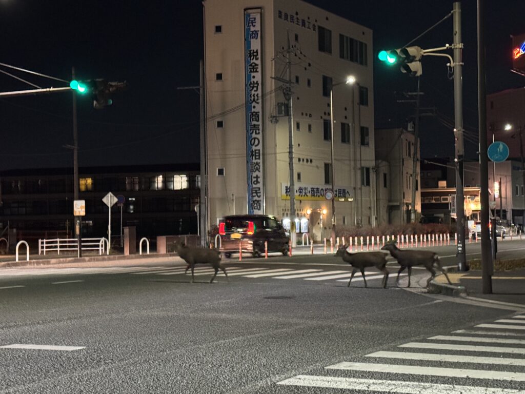 下の写真は、哲学対話の帰りに見た、信号無視をしている鹿さんたちです。